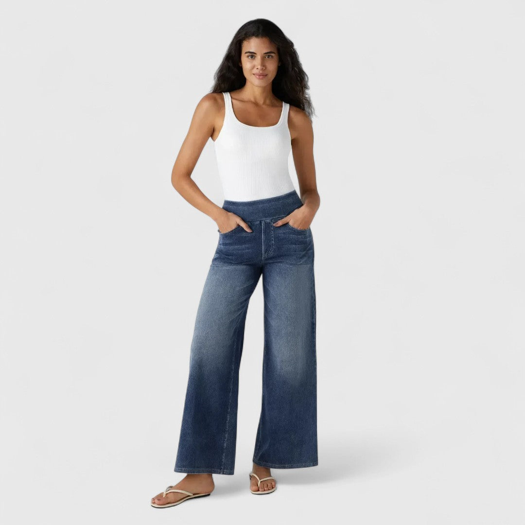 Visok Pas Z Jeansom s Širokimi Hlačnicami